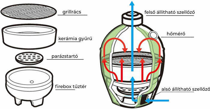 Begyújtásnál javasolt a grillkémény használata.