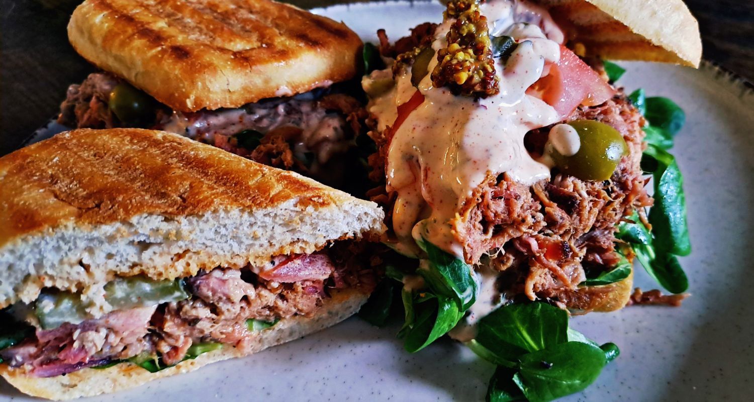 Ebbe a szendvicsbe, csemege uborka, friss saláta, paradicsom, jalapeno, olíva került. Az előre lepirított ciabbattára felhelyezzük a hozzávalókat és már fogyaszthatjuk is. Igazi ízrobbanásban lesz részünk és garantáltan megváltozik bennünk a pulled porkról alkotott kép.